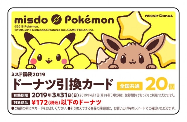 ミスド福袋19 が明日26日 水 から順次発売 今年はポケモンとのコラボグッズ入り 1 080円でドーナツ10個分 2 160円で個分 3 240円で30個分 ネタとぴ